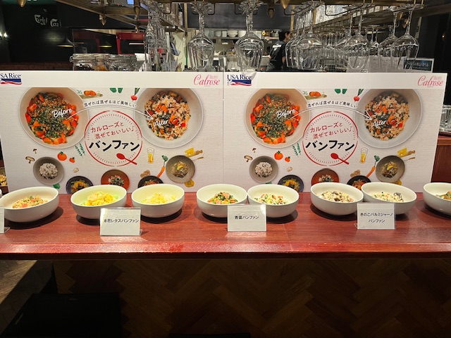 カリフォルニア産のおコメ「カルローズ」の軽い食感で調味料との相性抜群といった特長を活かした究極のメニュー「バンファン/拌飯」をエリックサウス稲田俊輔氏が考案。中華料理で混ぜることを意味する「バン/拌」から着想し、カルローズと食材や調味料を混ぜれば無限においしい料理ができるのではないかとというひらめきから、新しい混ぜごはん「バンファン/拌飯」と命名。メディア関係者に向けて、稲田氏によるメニュー説明、調理デモ、6種類の「バンファン/拌飯」の試食会が実施された。稲田氏が考案した6つの「バンファン」は、洋風、和風、エスニックとジャンルも様々。混ぜてもべとつきの少ない「カルローズ」だからこその今までにない新しいメニューが誕生した。