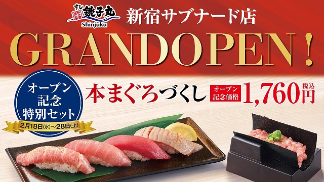 『すし銚子丸 Shinjuku 新宿サブナード店』が2月18日(水)にオープン!