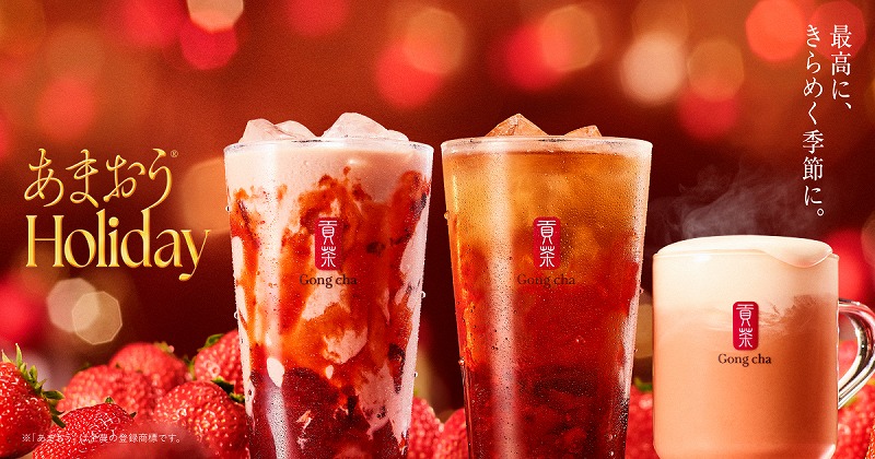 株式会社ゴンチャ ジャパンは、2025年11月27日(木)より、大粒でみずみずしいあまおうの魅力を詰め込んだ「あまおう®ホリデー」を期間限定で販売した。今年のドリンクは、芳醇な紅茶とまろやかなミルクのハーモニーが楽しめる「あまおう®ホリデー ミルクティー」と、あまおうのフレッシュな味わいを堪能できる、ホリデーシーズン初登場の「あまおう®ホリデー ティーエード」、そしてクリーミーな口当たりと甘い香りが際立つ寒い冬にぴったりの「HOTあまおう®ホリデー クリーミー ミルクティー」の3種類。