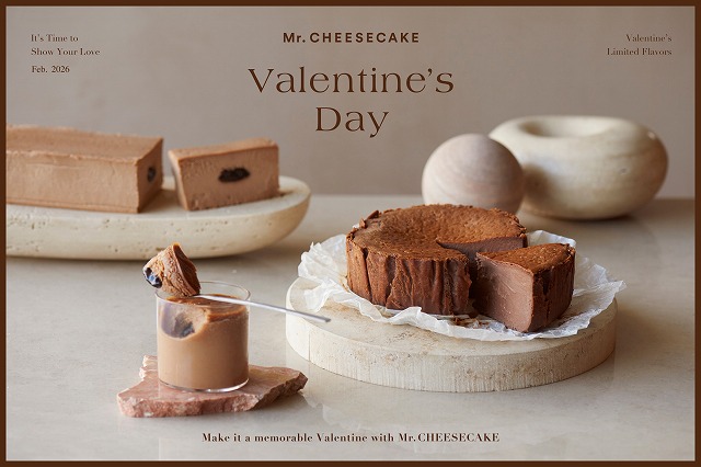 株式会社Mr. CHEESECAKEは、“心満たされる思い思いのバレンタインを。”をテーマにバレンタイン限定商品を販売する。チョコレートのように仕立てた「BASQUE CHEESECAKE Cacao(バスクチーズケーキ カカオ)」や、チョコレートとコーヒーを合わせた甘くほろ苦い「Mr. CHEESECAKE Cafe Mocha(ミスターチーズケーキ カフェモカ)」、そしてプチギフトにもおすすめなひとくちチーズケーキとフィナンシェのアソートセットなど、全6商品が登場。1月17日(土)よりMr. CHEESECAKEの常設ストアと公式オンラインストアにて販売開始し、1月中旬より順次、全国8箇所で開催するポップアップストア「Mr. CHEESECAKE YOUR CITY」でも販売する。